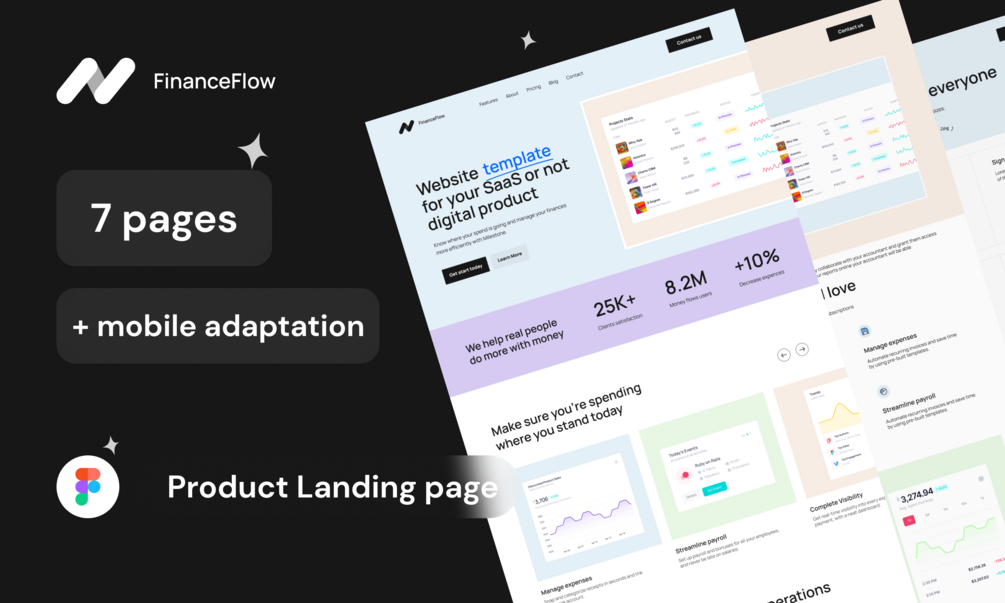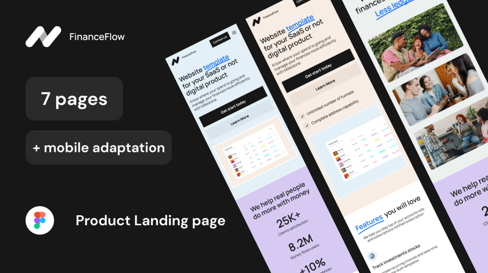 You'll get fully customizable landing page with 7 pages + Mobile adaptation within one layered FIGMA file 🔥